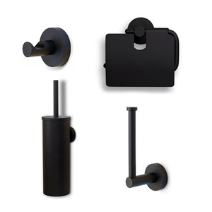 Blue Label Vida Facet toiletset, toiletborstel, toiletrolhouder, reserverolhouder en haakje, zwart