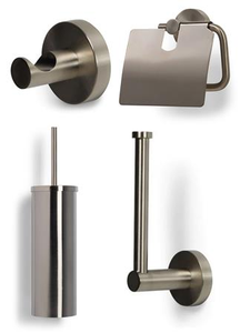 Blue Label Vida toiletset, toiletborstel, toiletrolhouder, reserverolhouder en haakje, geborsteld nikkel