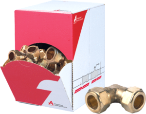 Vsh Super S1210 fitting met 2 aansluitingen 1-delig, lengte 43.9mm, bocht, uitwendige buisdiameter aansluiting 15mm, nom. diameter aansluiting 1 DN 12, aansluiting 1 messing, uitwendige buisdiameter aansluiting 15mm, aansluiting 1 knelring, nom. diameter aansluiting 2 DN 12, aansluiting 2 knelring,