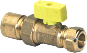Vsh Super K1028 gaskraan, behuizing messing, aansluiting 1 knelring, aansluiting 2 binnendraad cilindrisch B, nom. diameter aansluiting 1 DN 12, nom. diameter aansluiting 2 1/2" (15), met koppeling aansluiting 2, gastec QA, bediening draaiknop, oppervlaktebescherming behuizing geen (onbehandeld),