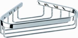 Geesa Basket korf enkel, messing, chroom, (bxdxh) 177x177x47mm, hoekuitvoering, 1 etages, geschikt voor hoekmontage, met bevestigingsmateriaal, profiel plat staf, verdekte bevestiging, geschikt voor wandmontage