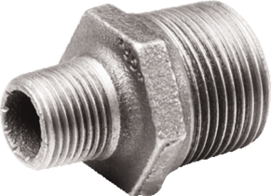 Nefit Industrial Gegalvaniseerd 245 fitting met 2 aansluitingen, recht, nom. diameter aansluiting 1 1.1/2" (40), aansluiting 1 buitendraad conisch BSPT-, nom. diameter aansluiting 2 1" (25), aansluiting 2 buitendraad conisch BSPT-, oppervlaktebescherming aansluiting thermisch verzinkt,