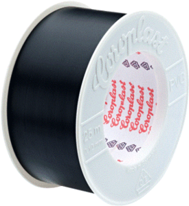 Coroplast zelfklevende tape, polyvinylchloride (PVC), zwart, (lxb) 25mx38mm, dikte 0.15mm, isolerend, UV-bestendig, zelfdovend, geschikt voor hoogspanning, temperatuurbestendigheid -10 - +105°C, toepassing isolatie/markeren, RAL-nummer 9005, norm EN-60454
