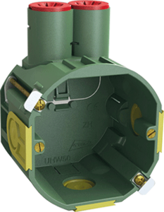 Attema UHW inbouwdoos wand/plafond enkel, groen, diepte 54mm, diameter 76mm, holle wand, rond, bouwvorm inbouwdoos/verbindingsdoo, voor buisdiameter overig, inwendige diepte 50mm, koppelbaar, met schroeven, behuizingsdoorvoer via uitbreekopen, voor aantal inbouwsokkels 1,