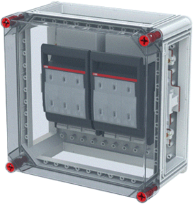 Abb VMS schakelveilighedenkast, (bxdxh) 320x130x320mm, beveiliging mespatroon, nom. (meet)stroom 160A, aanbouwmogelijkheid, 2 groepen, 3 polen, beschermingsgraad (IP) IP65, behuizing kunststof, met transparant deksel, nom. (meet)spanning 415V, plaatsing t.o.v. railsysteem universeel