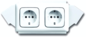 Abb Busch-Jaeger Future wandcontactdoos (wcd schakelmat.), wit, uitvoering contactdoos CEE 7/3 (type, 4 actieve contacten (rond), 2 eenheden, 1 fasen, aansluitwijze overig, RAL-nummer 9016, geïsoleerde montage