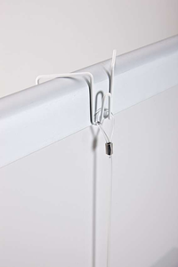 bestaat uit 2 x flexibele wandhaak wit, 2 x perlon koord 150 cm, 2 x ophanghaak.