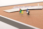 Prikborden met een beige prikoppervlak,gemaakt van het natuurproduct kurk.Voorzien van geanodiseerd Softline profiel met grijze kunststof hoekstukken.
