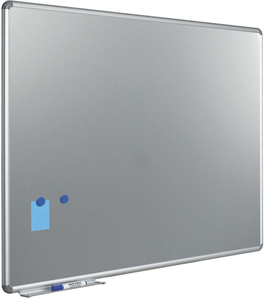 Magneethoudend en droog uitwisbaar zilverkleurig schrijfbord. Het zilveren, metalen whitebord is van hoge kwaliteit met een uitstekende wisbaarheid. Geanodiseerd design profiel met kunststof grijze hoeken. Inclusief met ophangmateriaal en een afleggoot van 30 cm.