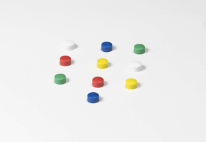 Ronde, vlakke magneten in verschillende maten en kleuren verkrijgbaar, verpakt per 10 stuks.