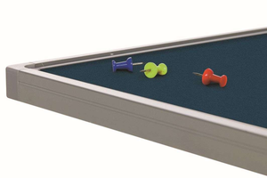Prikbord Bulletin heeft een prikoppervlak van kurklinoleum. Standaard in de kleur grijs, blauw, zwart, rood of oranje. Overige kleuren verkrijgbaar op aanvraag. Optimale levensduur door zelfherstellend vermogen. Geanodiseerd softline profiel met grijze kunststof hoekstukken.