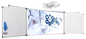 Projectiebord voor interactieve finger-touch projectoren (16:9), zoals bijv. Epson EB-1485Fi en EB-735Fi. Zeer dunne en lichte constructie met vlak opliggend aluminium profiel. Middenvlak: Low Gloss emailstaal met grijze strook voor plaatsing touch sensor. Vleugels: wit emailstaal. 31 cm afleggoot optioneel. Magneethoudend en droog uitwisbaar.