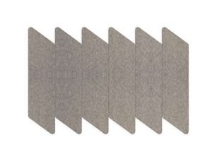 Akoestische wandtegels met band, parallellogram, PET. Te gebruiken als mededelingenbord. De schuine randen geven een 3D-diepte-effect. Eenvoudige bevestiging van de tape voor verschillende oppervlakken. Akoestische waarde: NCR = 0,6.