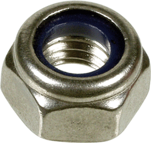Proftec borgmoer, roestvaststaal (RVS), hoogte 10mm, oppervlaktebescherming geen (onbehandeld), sleutelwijdte 17mm, type schroefdraad metrisch, kwaliteitsklasse RVS 304 (V2A), draadmaat (metrisch) 10, met nylonring, aandraaivoorziening buitenzeskant, zelfborgend, spoed schroefdraad 1.5mm