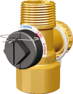 Flamco Flexcontrol expansievataansluitgroep, messing, nom. diameter 3/4" (20), uitwendige buisdiameter aansluiting 26.9mm, aansluiting 1 buitendraad conisch BSPT-, uitwendige buisdiameter aansluiting 26.9mm, aansluiting 2 binnendraad cilindrisch B, max. werkdruk 10bar,