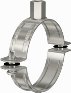 Flamco BRS tweedelige beugel rond, roestvaststaal (RVS), uitwendige buisdiameter 26 - 30mm, (bxdxh) 64x20x54mm, aansluitmaat aansluitvoorziening M8/M10, geschikt voor kunststof buis, aansluitvoorziening binnendraad, nom. diameter 3/4" (20), oppervlaktebescherming geen (onbehandeld),