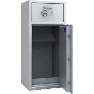 Afstortkluis inbraakwerend DRS Prisma Deposit II, Totale inhoud: 115 L, Type sluiting: Met sleutel, Type nr.: 101152201, Model: DRS Prisma Deposit II-2, Totale breedte: 590 mm, Totale diepte: 550 mm, Totale hoogte: 1300 mm, Kleur: Lichtgrijs, Gewicht: 356 kg, Aantal legborden: 0, RAL: 9002, Nuttige breedte: 480 mm, Nuttige diepte: 390 mm, Nuttige hoogte: 615 mm