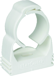 Walraven StarQuick buisklem, kunststof, wit, geschikt voor buisdiameter 20 - 23mm, max. aantal buizen 1, koppelbaar, kwaliteitsklasse polyamide (PA), oppervlaktebescherming overig, halogeenvrij, UV-bestendig, gebruikstemperatuur -40 - +90°C, temp. van ca. -40 °C tot