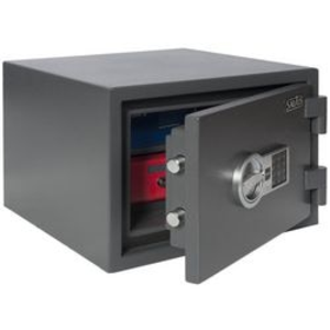 Salvus Milano 1 Elo kluis. Capaciteit: 19 l. Brandvertragend: Ja. Brandvertragend voor papier: 30 Min. Slottype: Elektronisch slot. Metalen Twist-Lock Klem: nee. Aantal planken: 1. Afsluitbaar: Ja. Afmetingen: 315 x 445 x 450 mm (h x b x d). Kleur: Grafietgrijs.