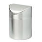 Tafelafvalemmertje. Dit RVS-tafelafvalemmertje beschikt over een swingdeksel. Hoogte: 16,5 cm. Diameter: 12,0 cm. Inhoud: 1,5 L.