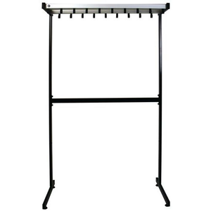 Vrijstaand garderoberek met 19 haken die in een rails onder de balk hangen. Mogelijk om garderoberek tegen de wand te plaatsen. Optioneel: kledinghangers om aan de buitenste rij haken te hangen (A133887), wielen set (A134122) en paraplurek (A784118).