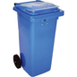 Container met papiergleuf en slot, Totale inhoud: 120 L, Opening: Gleuf, Materiaal: Kunststof, Aantal wielen (Reeks): 2 wielen, Deksel kleur: Blauw, Hoogte: 97.4 cm, Kleur: Blauw, Breedte: 555 mm, Lengte: 479 mm, Verrijdbaar: ja, Model: VB 120400, Type: Container met papiergleuf