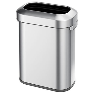 Stijlvolle open top afvalbak van geborsteld RVS met fingerprint proof coating. Voorzien van een ruime ovale inwerpopening, handige handvatten en een kunststof onderzijde die de vloer beschermd. De basis beschikt over een opening om de afvalzak te klemmen. De top heeft een kunststof binnenring die hygiƫnisch aansluit op de afvalzak/-bak.