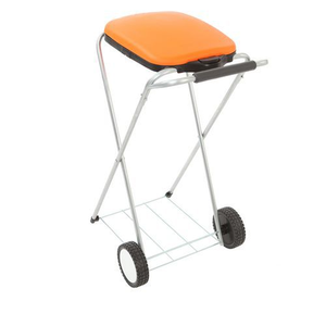 Mobiele zakhouder bestaande uit een frame van gegalvaniseerde buizen en een gekleurd kunststof deksel. Het deksel gaat eenvoudig open door op de knop Push te drukken. Deze houder is uitgerust met twee