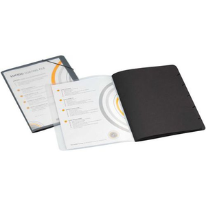 Overzichtelijk archiveren met zes tabs. Het binnenwerk van de map is van zwart, blauw of rood karton, zodat documenten niet verschuiven. De voorzijde van de map is voorzien van een insteek waarin eenvoudig een A4-vel past, zodat de map een eigen uitstraling krijgt. De map wordt gesloten door middel van een elastieksluiting. Ideaal als projectmap, vergadermap of relatiedossier. De buitenzijde is gemaakt van polypropyleen. De binnenzijde is gemaakt van 270 g/m² chloorvrij en zuurvrij Colorkraft karton.