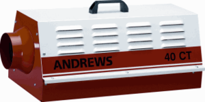Andrews mobiele elektrische luchtverhitter, met ruimtethermostaat, luchthoeveelheid 450m³/h, aansluitspanning 400V, 2 vermogensstanden, beschermingsgraad (IP) IP44, diameter uitblaas 120mm, gewicht 16kg, opgenomen vermogen 9kW, ventilatiestand
