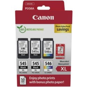 Canon Inktcartridge 8286B015. Inclusief: 2 x Zwart + 1 x 3-kleuren inktcartridge. Kort Cartridge Referentienummer: 545, 546. Merk: Canon. Model: 8286B015. Origineel of compatibel: Origineel. Printkleur: Zwart;Cyaan;Magenta;Geel. Product Type: Inktcartridge. Selling_UOM_Ink_Toner: Multipak . VE: Multipak . Kantelhoek: -3.5° to +21.5 °.