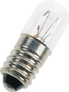 Bailey Miniature Edison Screw indicatie- en signaleringslamp, kleurloos, diameter 10mm, energie-efficiƫntieklasse volgens E G, voet E10, lampspanning 12V, totale lengte 28mm, technologie gloeilamp, lampvorm buis eenkneeps, nom. stroom 250mA, 3W, temperatuur 2700K, gemiddelde nom. levensduur 2000u,