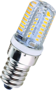 Bailey Compact indicatie- en signaleringslamp, wit, diameter 15mm, energie-efficiƫntieklasse volgens E G, voet E14, lampspanning 230V, totale lengte 54mm, technologie LED, lampvorm buis eenkneeps, nom. stroom 33mA, 2.4W, temperatuur 3100K, gemiddelde nom. levensduur 20000u, lichtstroom 150lm
