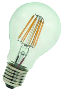 Bailey led-lamp, wit, dimbaar, voet E27, 8W, temperatuur 2700K, uitvoering glas/afdekking helder, weergave-index 80 - 89, lichtstroom 900lm, lampvorm peer, lampaanduiding A-type, filament lamp, lichtkleur vlgs. EN 12464-1 warmwit < 3300 K, specifieke lichtstroom lamp 113lm/W,