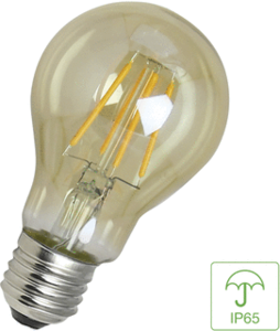 Bailey led-lamp, goud, lengte 105mm, diameter 60mm, temperatuur 2200K, voet E27, 4W, lichtstroom 350lm, lampvorm peer, nom. spanning 220 - 240V, stralingshoek 320°, uitvoering glas/afdekking helder, lichtkleur (code) 822, filament lamp, spanningstype AC, beschermingsgraad (IP) IP65,