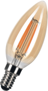 Bailey LED Filament led-lamp, goud, dimbaar, voet E14, 4W, temperatuur 2200K, uitvoering glas/afdekking helder, weergave-index 80 - 89, lichtstroom 300lm, lampvorm kaars, lampaanduiding overig, filament lamp, lichtkleur vlgs. EN 12464-1 warmwit < 3300 K, specifieke lichtstroom lamp 75lm/W,