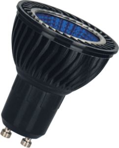 Bailey BaiColour LED led-lamp, blauw, dimbaar, voet GU10, 5.5W, uitvoering glas/afdekking helder, weergave-index 70 - 79, lichtstroom 100lm, lampvorm reflector, lampaanduiding PAR16, specifieke lichtstroom lamp 18lm/W, consistentie (McAdam ellips) SDCM5, behuizing zwart, beschermingsgraad (IP) IP20,