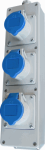 Hateha MVD cee-contactdoos combinatie, grijs, (dxbxh) 97x386x104mm, voeding/aansluitmogelijkheid 1 leiding (aftakleiding), CEE-contactdoos-16A 3x16A3p230V, beschermingsgraad (IP) IP44, behuizing kunststof, uitvoering netaansluiting overig, hantering draagbaar