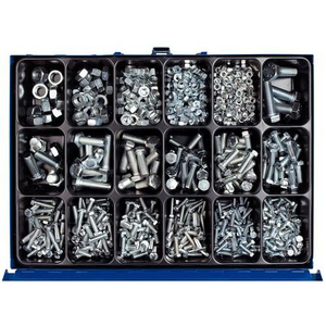 Metalen koffer met zeskantschroeven met volledige schroefdraad en zeskantmoeren, Aantal stuks: 950, Type: Stalen koffer