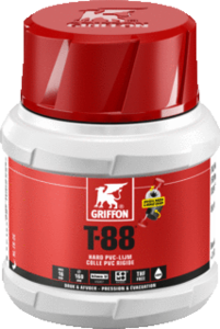 Griffon T-88 kunststoflijm, helder, type PVC lijm, transparant, vochtbestendigheid volgens EN 204 overig, THF-vrij, UV-bestendig, geschikt voor PVC, geschikt voor druk, max. druk 16bar, geschikt voor max. buisdiameter 160mm, spleetpassing 0.3mm, perspassing 0.2mm, CE-keurmerk, met kwast,