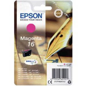 Epson inktcartridge 16. Deze inktcartridge is geschikt voor de volgende printers: Workforce-WF-2510WF, WF-2530WF, WF-2540WF, 2010W, WF-2630WF, WF-2650DWF, WF-2660DWF, WF-2750DWF, WF-2760DWF. Tevens beschikt deze over een capaciteit van circa 165 paginas bij 5% dekking. Inkt volume: 3,1 ml. Printkleur: magenta.