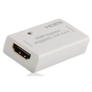 ACT HDMI repeater AC7820. Soort: AV-repeater. Maximum resolutie: 3840 x 2160 Pixels. Maximaal bereik: 40 m. Bedraad/draadloos: bedraad. Afmetingen: 12 x 49 x 27 mm ( h x b x d). Kleur: wit.