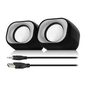 Eminent Luidspreker EM3513. Kleur: Zwart. Diepte: 64 mm. Hoogte: 66 mm. Levering: 1 x luidsprekerset. Model: EM3513. Breedte: 78 mm. Type product: Luidspreker. Gewicht: 267 g. Audiokanalen: Stereo. Batterij of accu inbegrepen: Nee. Bluetooth: Nee. Type aansluiting Audio: 3,5 mm Jack. Microfoon: Nee. Draagbaar of desktop: Desktop/draagbaar. Oplaadbaar: Niet-oplaadbaar. Kabellengte: 1 m. Frequentiebereik: 150Hz-20KHz. Uitgangsvermogen: 6W. Stroomvoorziening: USB. Geschikt voor: PC en Laptop. Volume: minder dan 30dB.
