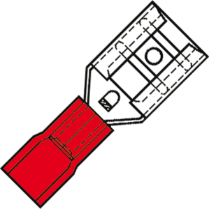 Klemko SP aderdoorverbinder rond/vlak huls, messing, nom. doorsnede 0.34 - 1.66mm², max. stroom (Imax) 10A, stekker-/plugafmetingen plat 2.8x0.5mm, isolatie gedeeltelijk geïsoleerd, isolatie polyamide (PA), isolatie rood, halogeenvrij, oppervlaktebescherming vertind, AWG-bereik 16 - 22