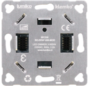 Klemko dimmer, aluminium, bedieningswijze overig, type belasting universeel en LED retrofi, samenstelling basiselement, dimbaar faseafsnijding, inbouw (stucwerk), ingang voor nevenunit, geschikt voor toepassing met drukke, nom. spanning 207 - 253V, max. schakelvermogen LED 500W,
