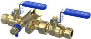 Raminex TBE TBE-EA-ES terugstroombeveiliging, hoogte 79mm, nom. diameter aansluiting 1 DN 15, aansluiting 1 knel, aansluiting 2 knel, terugstroombeveiliging conform EN 1 EA, behuizing messing, geschikt voor drinkbaar water, inbouwpositie horizontaal/verticaal, kwaliteit overig,