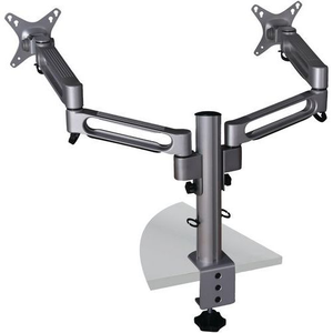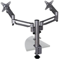 Ideaal voor thuiswerken Dubbele bureausteun met arm voor 2 platte schermen, kantelbaar en verstelbaar. Stevige en flexibele steun voor intensief en professioneel gebruik. Naar behoefte in te stellen in staande of liggende modus. Geïntegreerde klembevestiging en kabelmanagementsysteem. Elke arm is afzonderlijk in hoogte verstelbaar. Let op: maximale belasting per arm 13 kg, van de 2 armen: 25 kg. Geschikt voor platte schermen tot 21". Geschikt voor bureaudiktes van max. 11,5 cm.