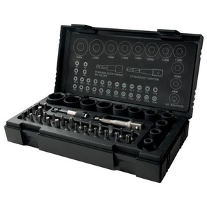 Deze 41-delige slagmoerdoppen- en bitset van RODAC komt in de garage of op de werkplaats goed van pas. Deze set bevat 10 x 1/2 inch slagmoerdoppen (8, 10, 11, 12, 13, 14, 17, 19, 21, 22 mm). 28 bits en 3 adapters (een rvs snelwisselbithouder, een 1/2 inch DR dopadapter en een bit-adapter). De set wordt geleverd in een blaasgegoten kunststof koffer.