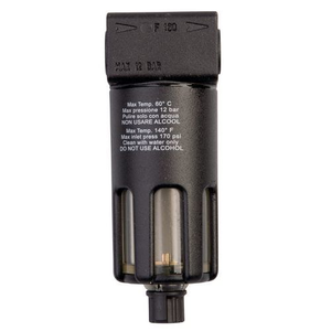 De RASG1010-14 is een 1/4 inch filter waterafscheider met een capaciteit van 30 ml. De maximale ingangsdruk is 12 Bar.