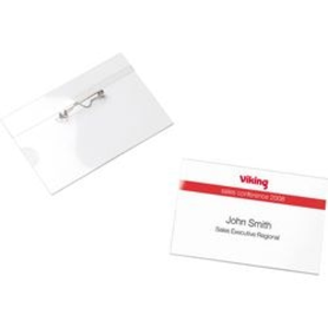 Viking speldbadges. Deze badges zijn voorzien van een speld en worden geleverd inclusief personaliseerbare kaartjes. Formaat (L x B): 90,0 x 60,0 mm. Pak: 50 stuks.